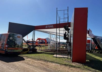 - Fabricamos el stand en nuestro taller y llevamos adelante el montaje en el predio, cumpliendo los tiempos establecidos y cuidando cada detalle.
