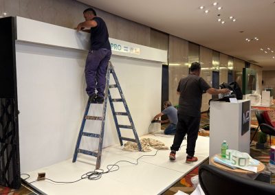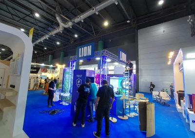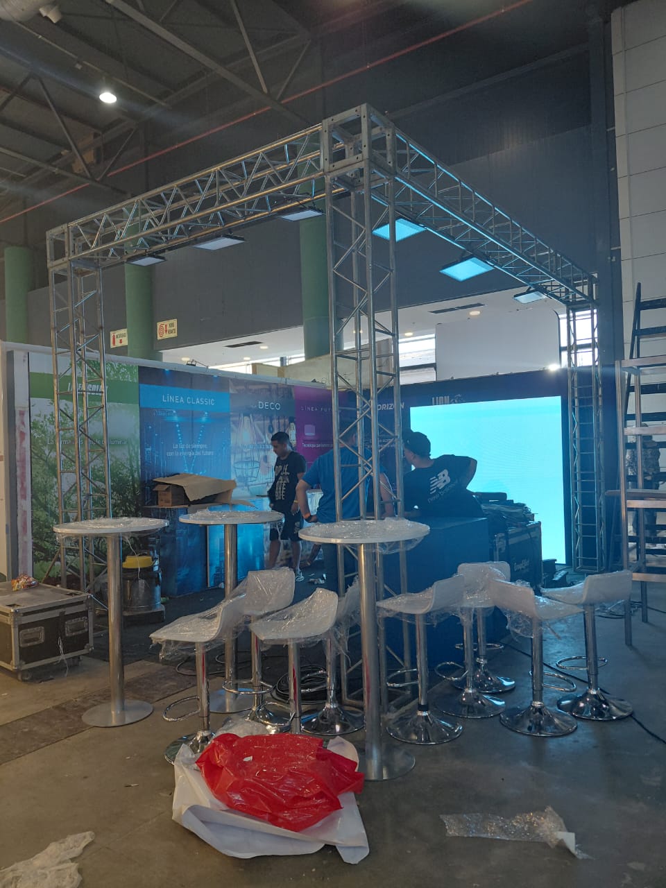 Coordinamos toda la logística: traslado, armado, supervisión técnica en predio y desmontaje al finalizar el evento. Cumplimos plazos estrictos y trabajamos de forma integrada con los organizadores de ferias y exposiciones.