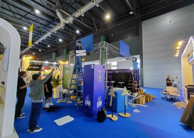 Contamos con infraestructura propia para producir stands de gran envergadura. Utilizamos materiales de alta calidad, garantizando durabilidad, estética y precisión en cada estructura. - Montaje y Desmontaje en Predio
