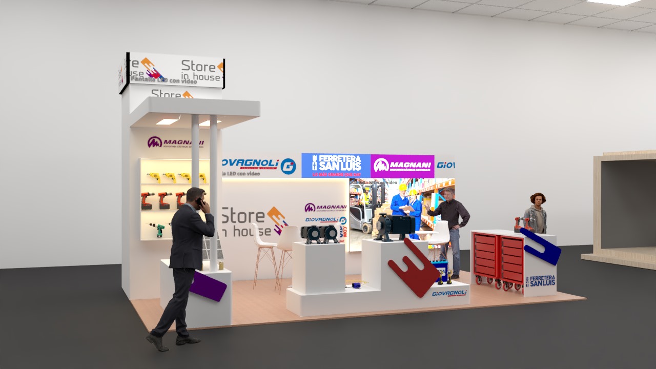 Desarrollamos propuestas creativas y funcionales con renders 3D fotorrealistas, orientadas a empresas que necesitan destacar con espacios amplios, modernos y alineados con su identidad de marca. - Fabricación de Stands a Medida